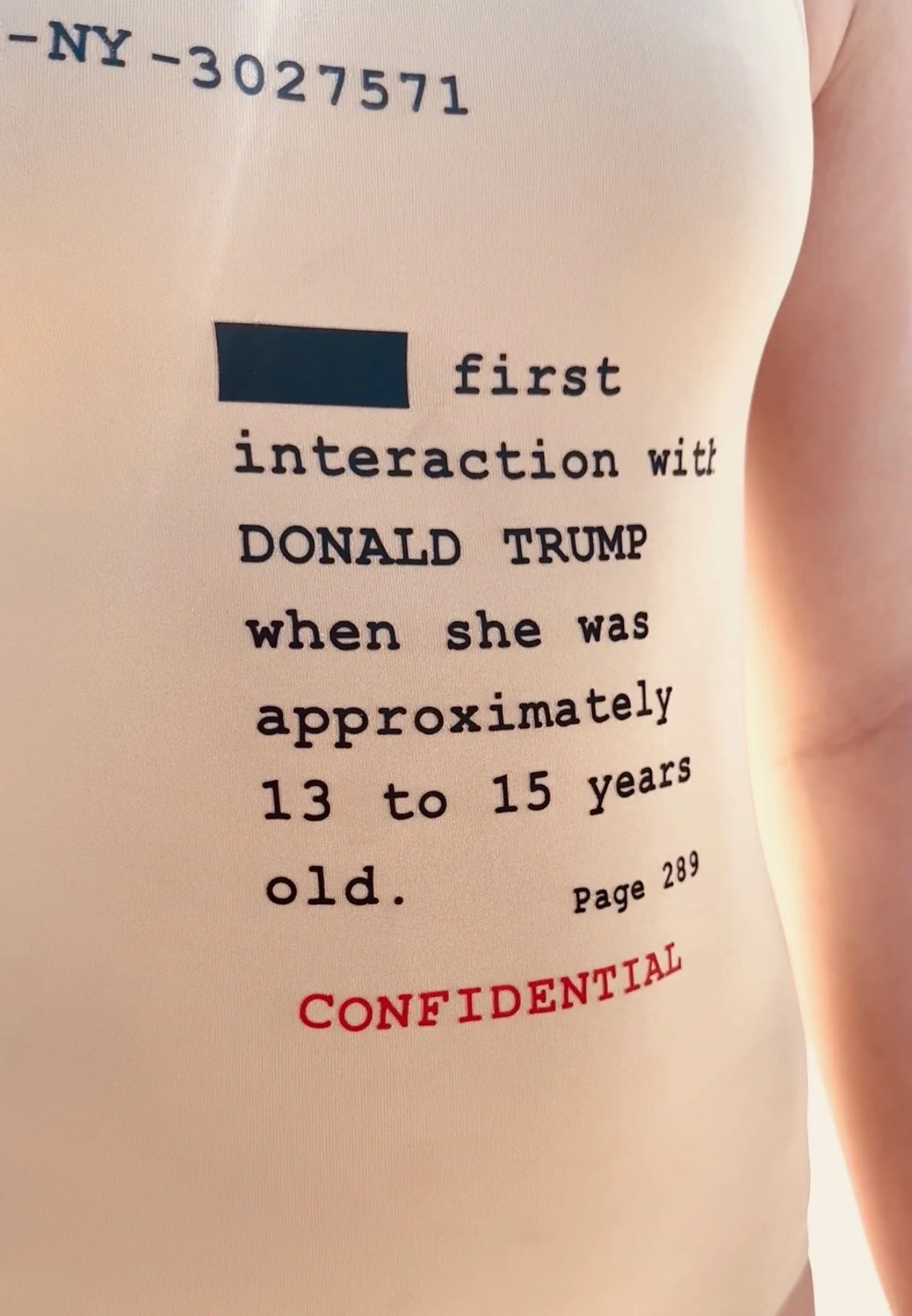 "ResistDance vs Redaction" draws from recent NPR reporting that the Department of Justice withheld and removed certain Epstein-related documents tied to allegations that President Donald Trump sexually abused a minor identified as Jane Doe 4. The performance centers her testimony, with the dancers' leotards printed with excerpts from the FBI document that allegedly went missing from the released Epstein files.
